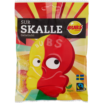 كل قطعة حلوى في أكياسنا حاصلة على شهادة التجارة العادلة وخالية تمامًا من الجيلاتين والمكونات الأخرى المشتقة من الحيوانات.