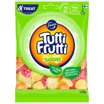 سعر الوحدة لكلحلوى توتي فروتي تجلب المتعة! حلوى توتي فروتي ذات الغلاف الحامض، توتي فروتي ساور ستدغدغ براعم التذوق لديك بنكهة التوت والكمثرى والليمون والمزيد - مع لمسة حامضة. همسًا! حلوى توتي فروتي ساور مصنوعة من ألوان طبيعية وخالية من الجيلاتين ومناسبة للنباتيين. تستمد مذاقها الطازج من النكهات الطبيعية. استمتع بها بنفسك أو أضف بعض المرح إلى يوم صديقك!