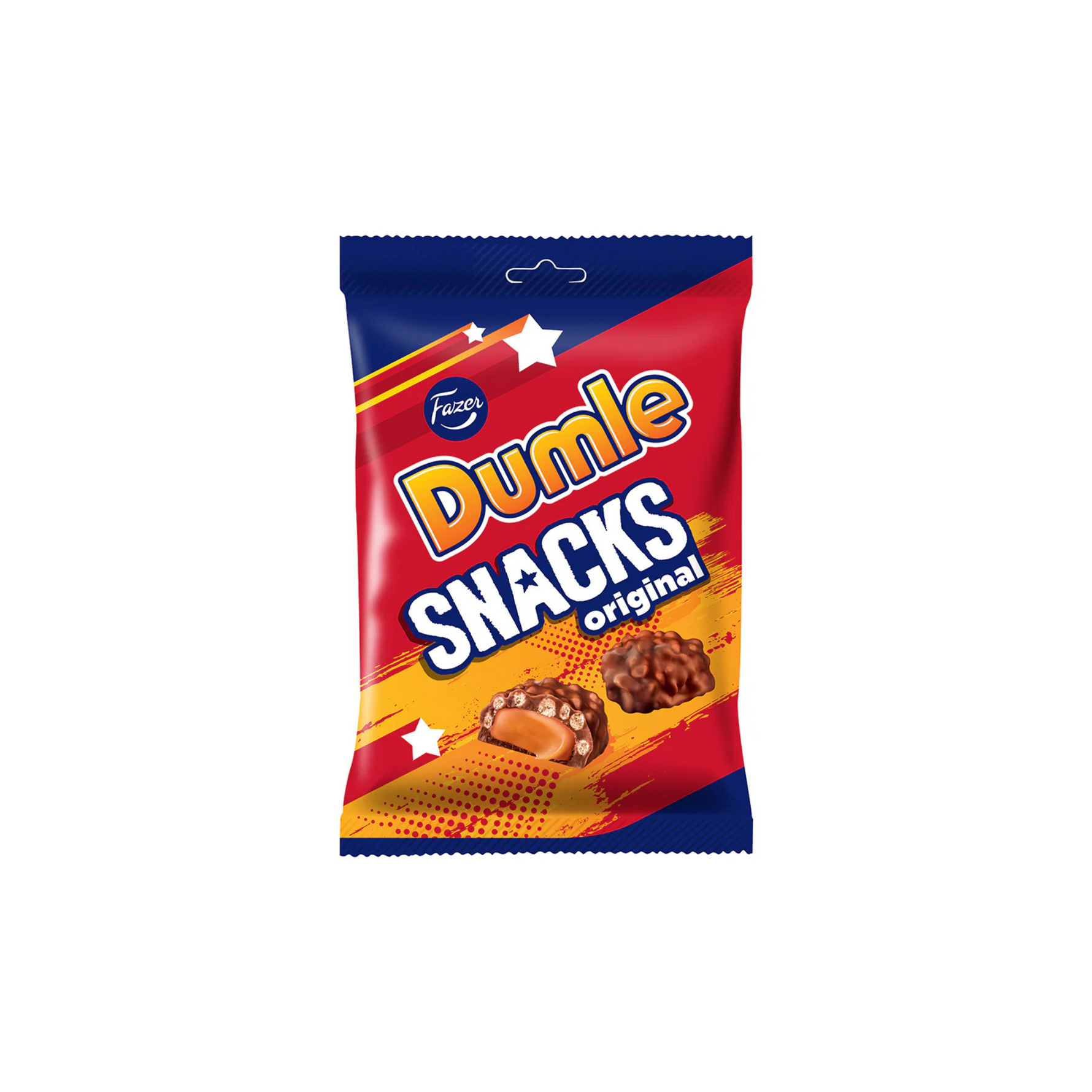 شارك الفرحة - الحقيبة مثالية للمشاركة مع الأصدقاء والعائلة! مثل جميع أنواع شوكولاتة Fazer، فإن Dumle Snacks مصنوعة من الكاكاو المستخرج بطريقة مسؤولة بنسبة 100%.