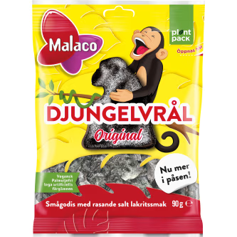 Unit price perMalaco Djungelvrål was launched in 1982, and since then, these intensely salty licorice candies have been a favorite among candy lovers. Perfect for those who enjoy extra salty salmiak. The candy bag contains 90g. Vegan, palm oil-free, and made without artificial colors. Malaco – Saturday all week long!