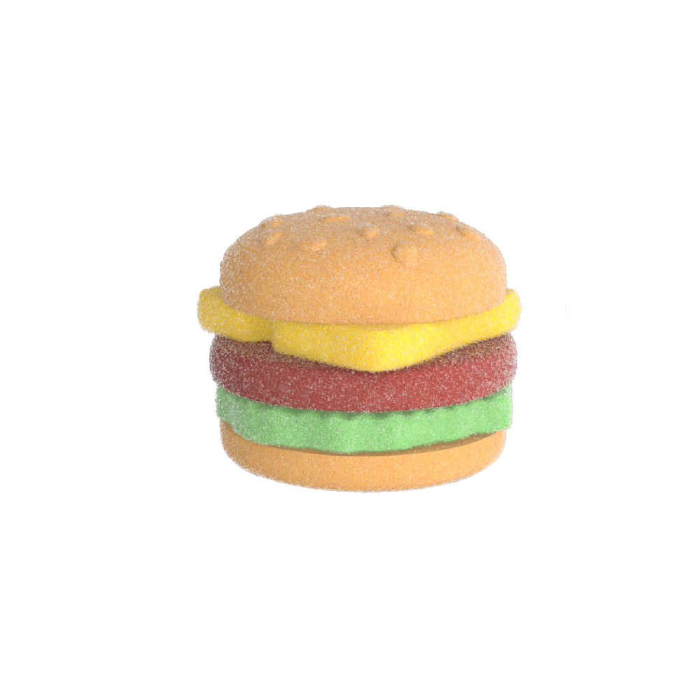 A fluffy, layered marshmallow shaped like a burger—playful, juicy, and perfect for pick & mix enthusiasts.